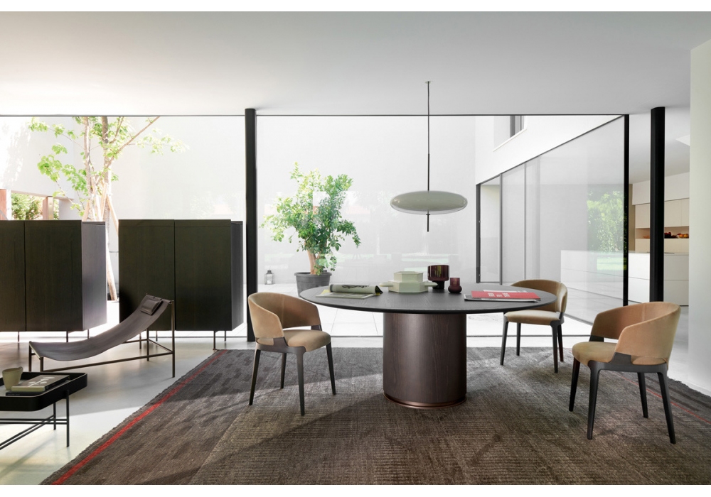 Velis designed by Mario Ferrarini for Potocco is an armchair with structure in ash wood or canaletto walnut in different finishes. Seat and back are padded with fire retardant polyurethane foam and covered in various types of fabric, leather or eco-leather.
