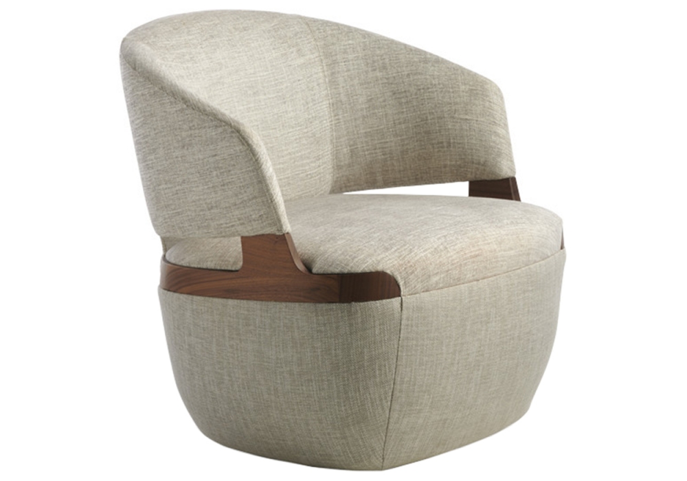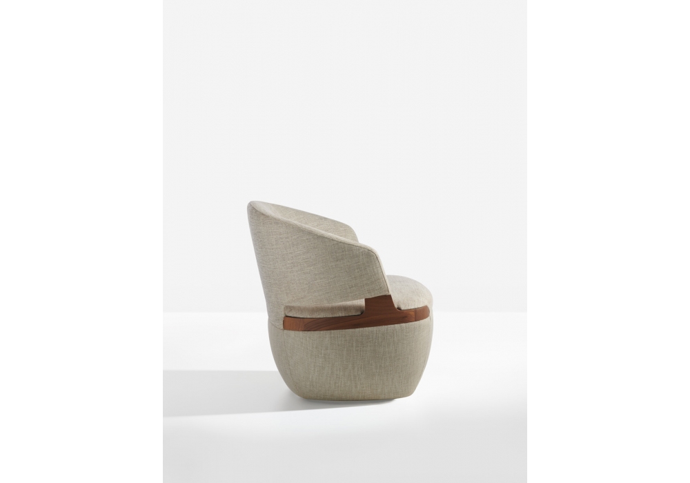 Velis designed by Mario Ferrarini for Potocco is a swivel armchair entirely upholstered with structure in ash wood or canaletto walnut in different finishes. Seat and back are padded with fire retardant polyurethane foam and covered in various types of fabric, leather or eco-leather.
