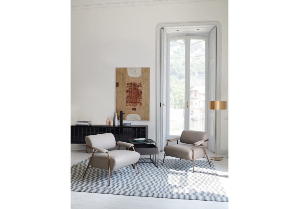 Stay designed by StorageMilano for Potocco is an armchair with tubular metal structure in different finishes. Seat and back are padded with fire-retardant polyurethane foam and covered in various types of fabric, leather or eco-leather.