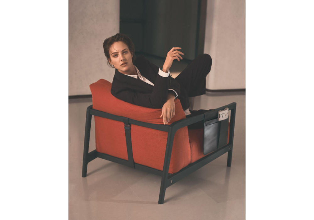 Everyday Life designed by Paul Smith for DePadova is an armchair with structure in solid ash wood, cushion and seat in polyurethane foam are in goose down with kapok fiber covered with organic cotton canvas the cover is removable in fabric or leather with cross stitching, available in different finishes.