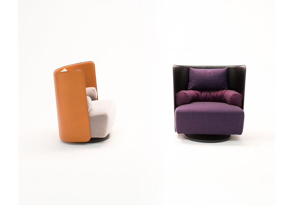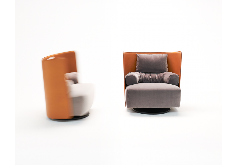 880 Campiello + designed by De Pas, D'Urbino, Lomazzi for Zanotta is an armchair with backrest in plywood covered in leather, seat in polyurethane with differentiated citation / regenerated polyester flakes and removable external cover in fabric. Only the lumbar cushion can be requested in a different color within the same type of fabric.