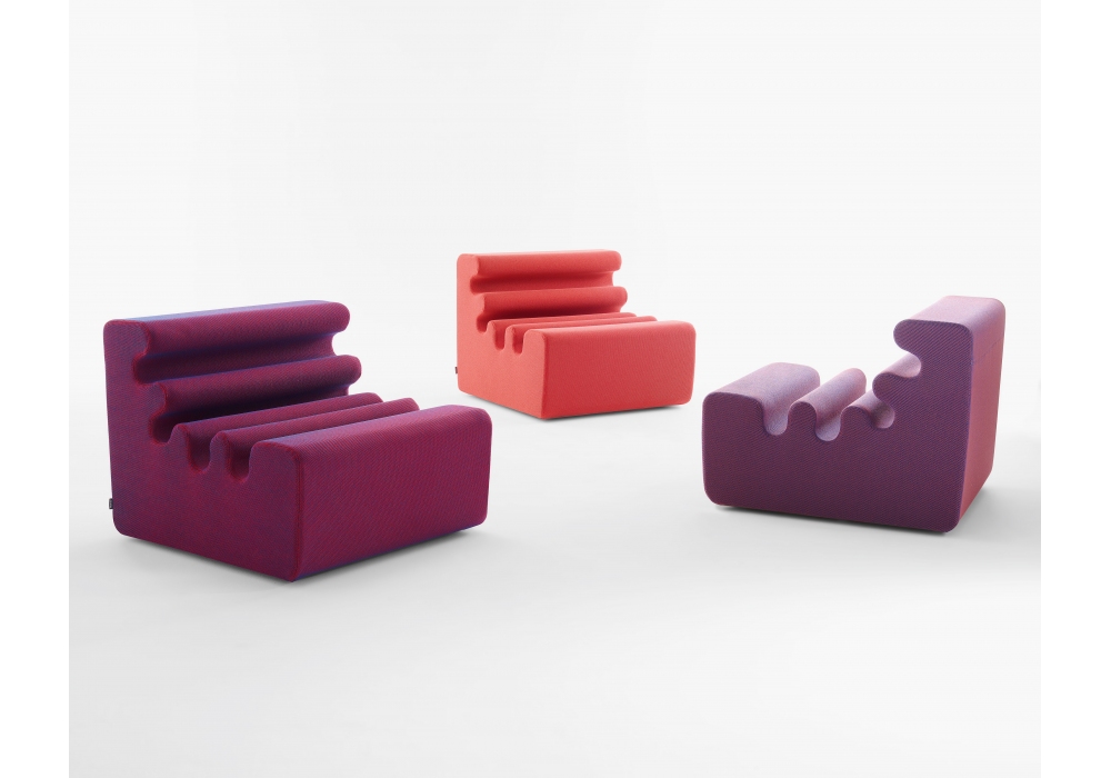 870 Karelia designed by Liisi Beckmann for Zanotta is an armchair with structure in polyurethane foam in different densities. Removable external cover in bielastic fabric.