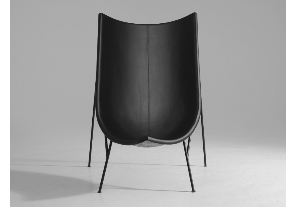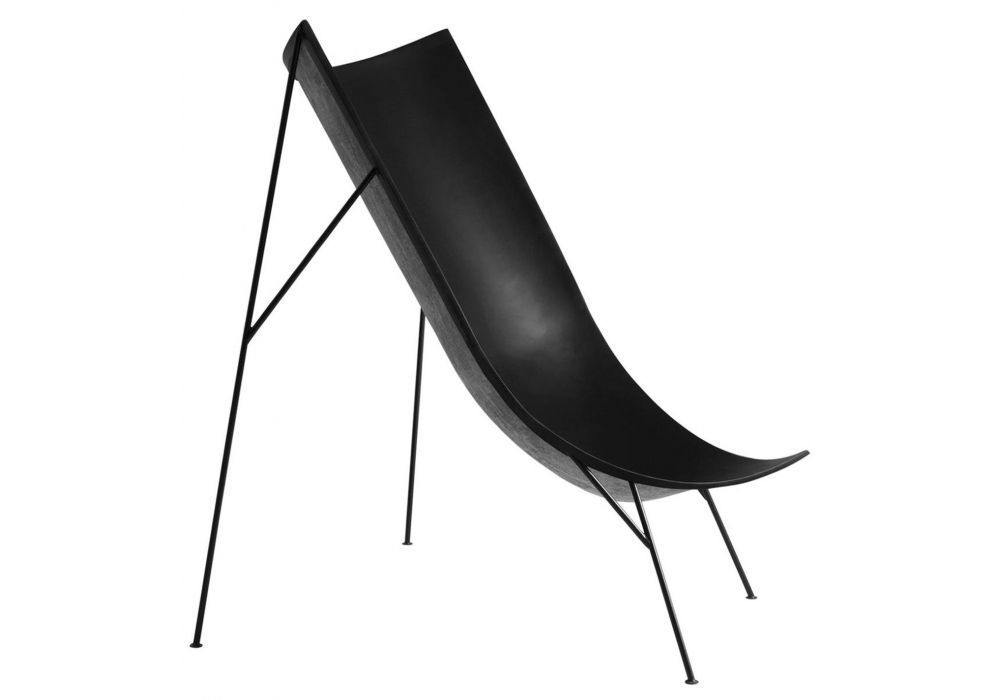 Ombra designed by Verter Turroni for ImperfettoLab is an armchair made of painted fiberglass, metal base and seat in black or covered in leather.