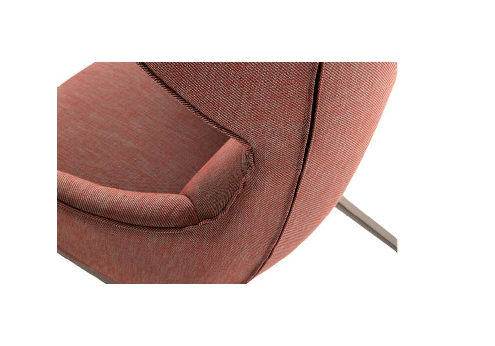395 P22 designed by Patrick Norguet for Cassina is an armchair made with an aluminum or solid wood base and fabric or leather upholstery.
