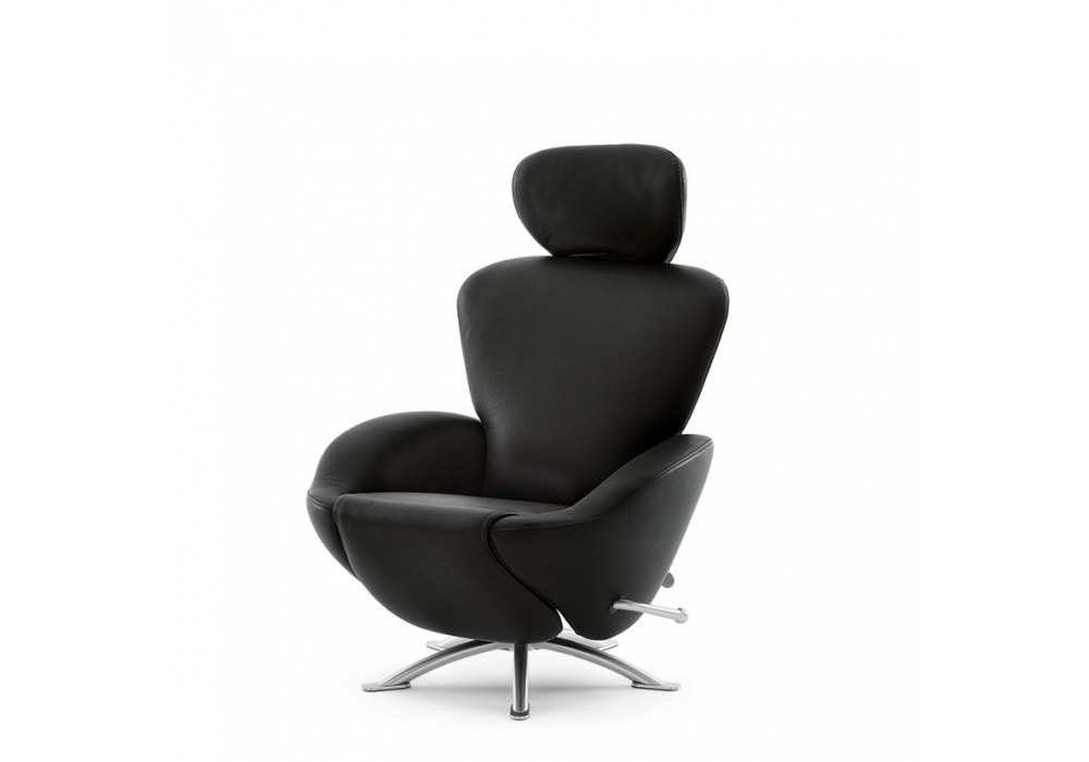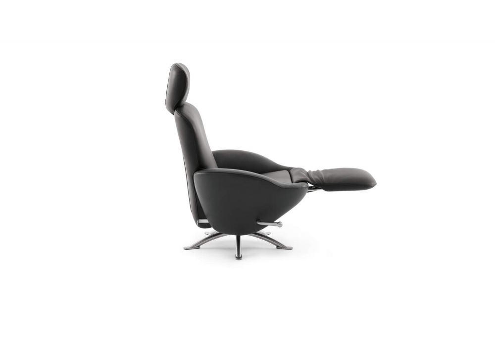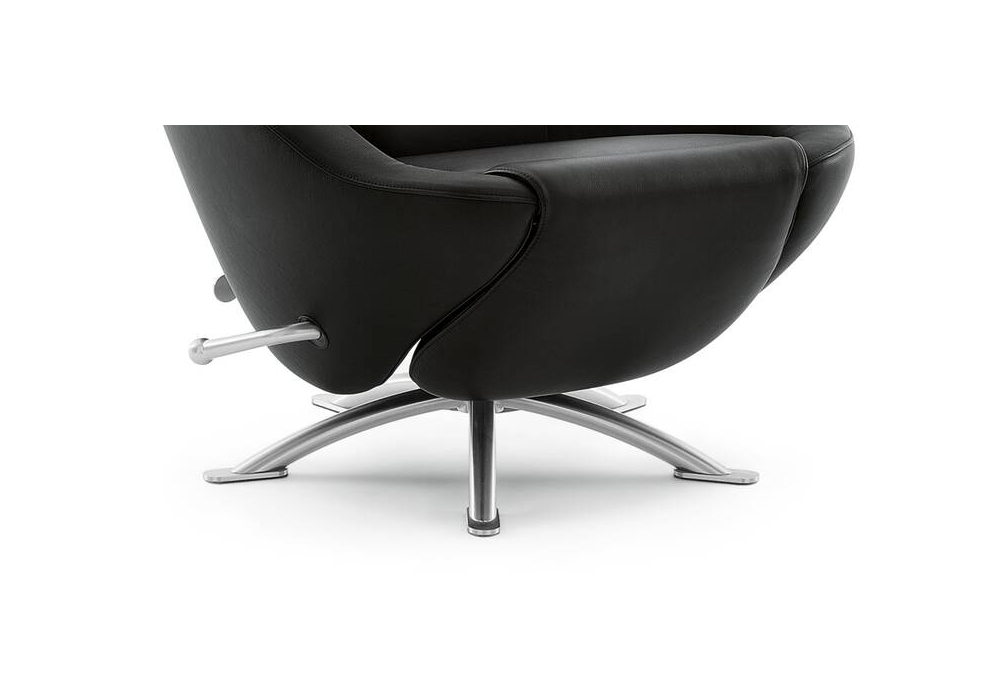 K10 Dodo designed by Toshiyuki Kita for Cassina is an armchair made with a tubular steel structure, seat and backrest with elastic straps, padding in polyurethane foam and polyester wadding and upholstery in fabric or leather. Swivel base in satin-finish nickel steel tubing.