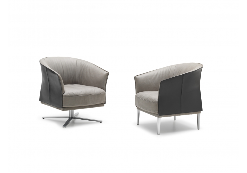 DS-291 designed by de Sede Design Team for De Sede is an armchair with metal structure and legs in polished aluminum. Available in two versions, with four legs or with a 360 ° rotatable base. Upholstery in fabric or leather in different finishes.