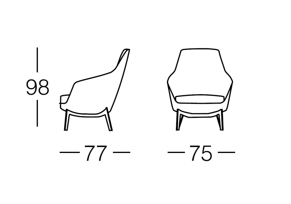 Corinna designed by C. Bimbi for Dema is an armchair with metal structure embedded in polyurethane foam and covered with a protective fabric lining. Feet in metal with non-slip in molded thermoplastic material and upholstery in leather or fabric.