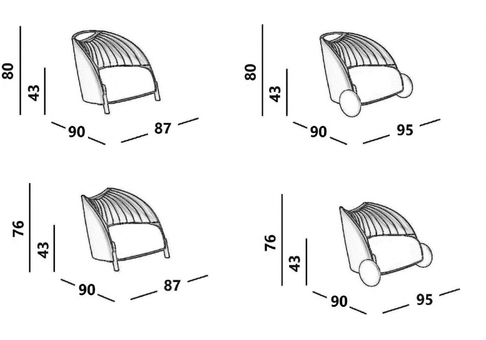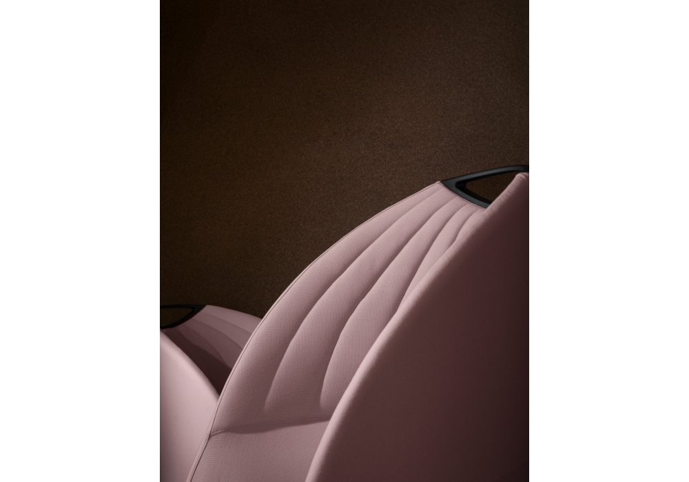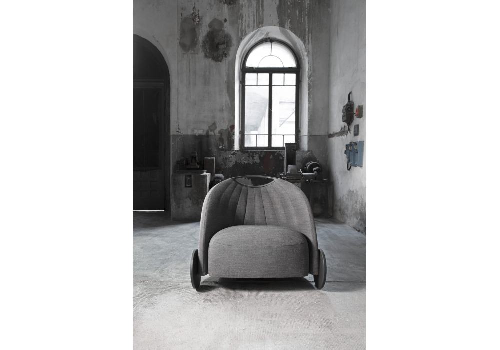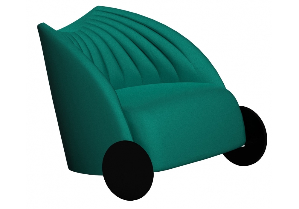 Biga designed by Favaretto & Partners for Luxy is an armchair with low backrest. Padding in flexible polyurethane foam. Feet or wheels in black rigid polyurethane with steel insert. Available with or without handle on the backrest.