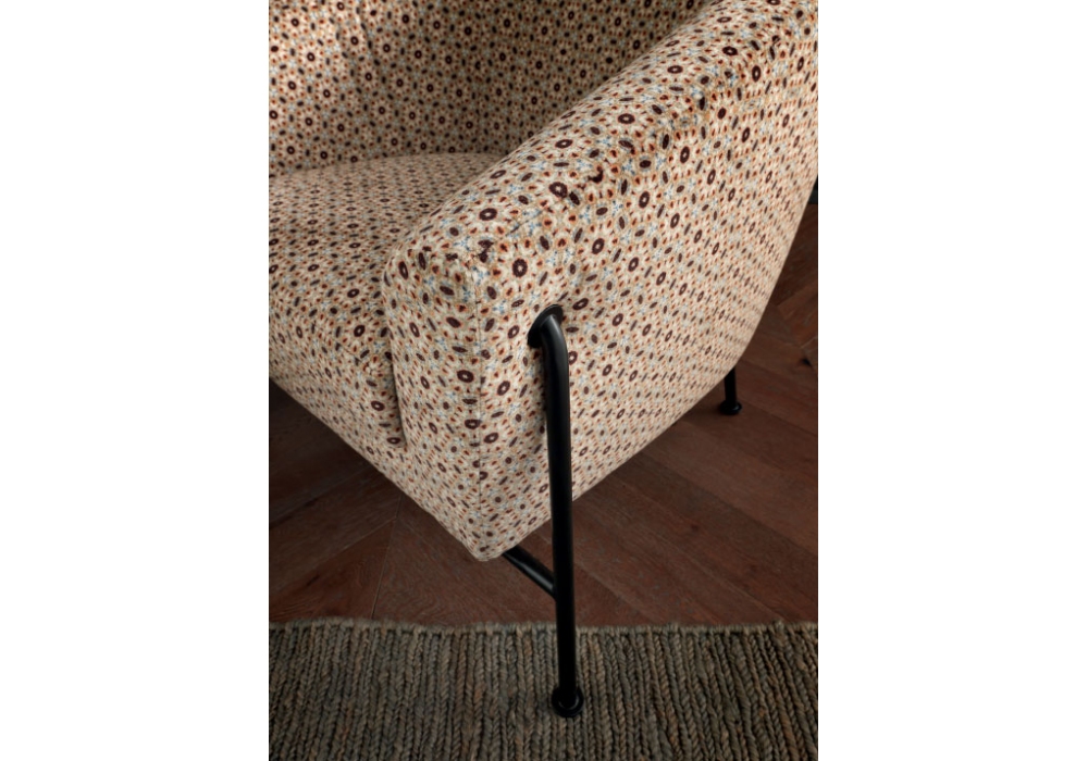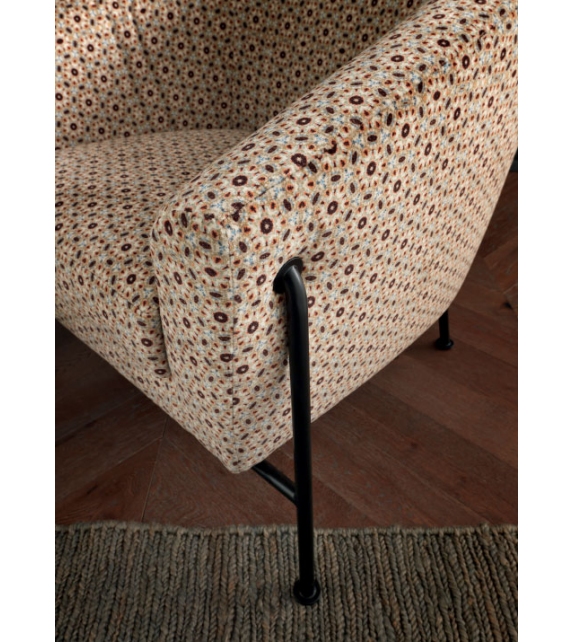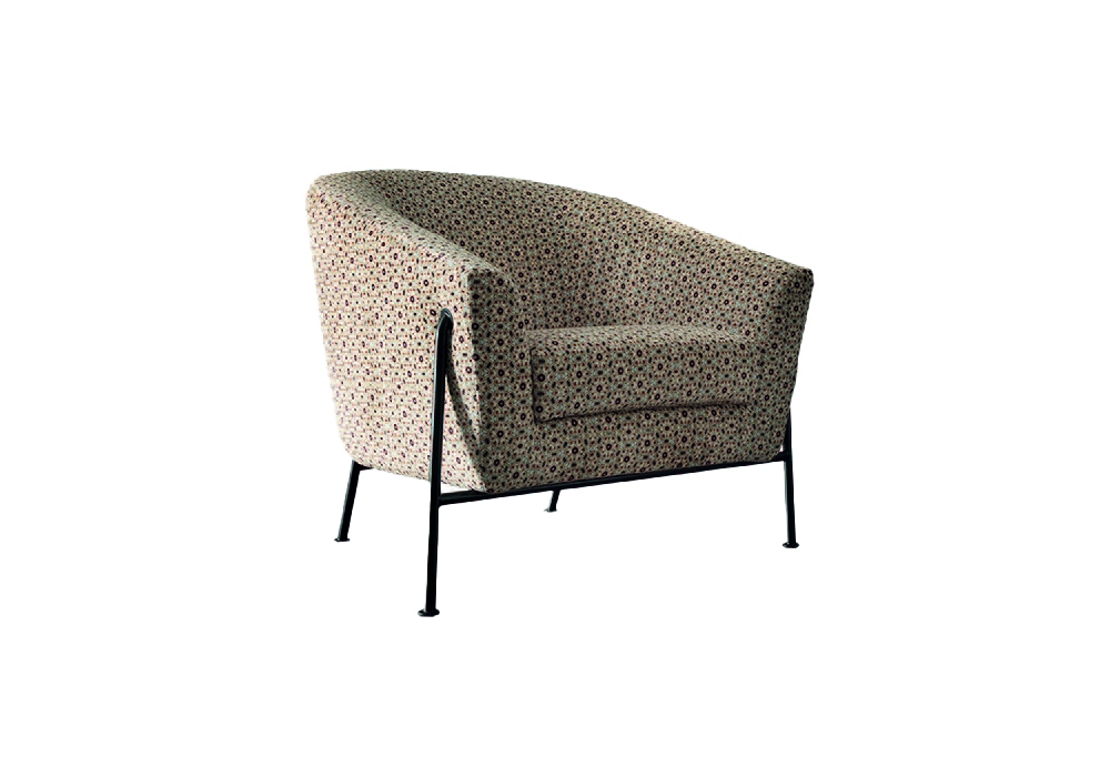 Loren signed produced by Valentini is an armchair with structure in wood, polyurethane and fiber. Metal foot with matt black painted finish. Removable cover in different finishes.