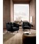 Ethos designed by Valentini is an armchair with structure in wood, polyurethane and fiber. Metal foot with matt black painted finish. Removable cover in different finishes.