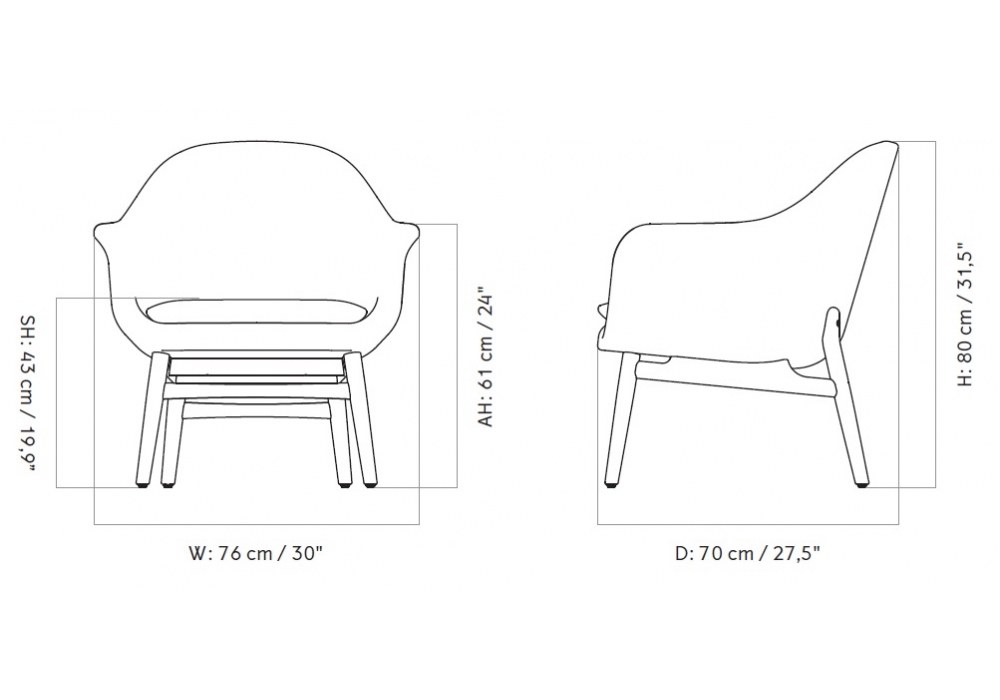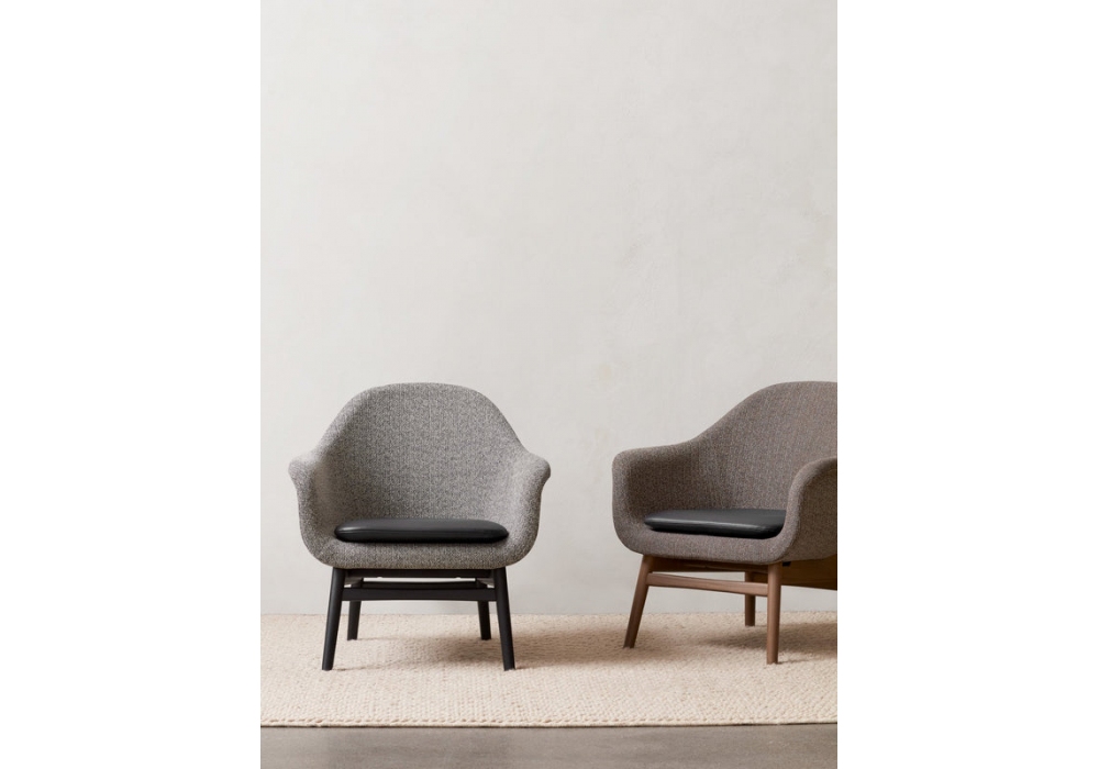 Harbor designed by Norm Architects for Audo Copenhagen is a padded armchair, upholstered in fabric or leather and legs in oak or walnut. Available in different finishes.