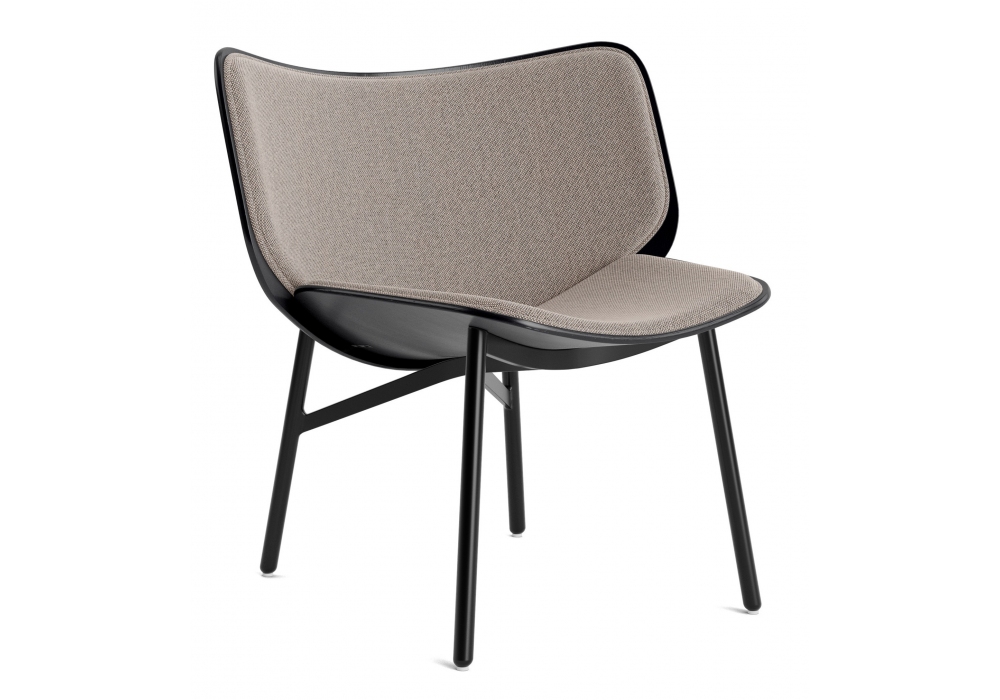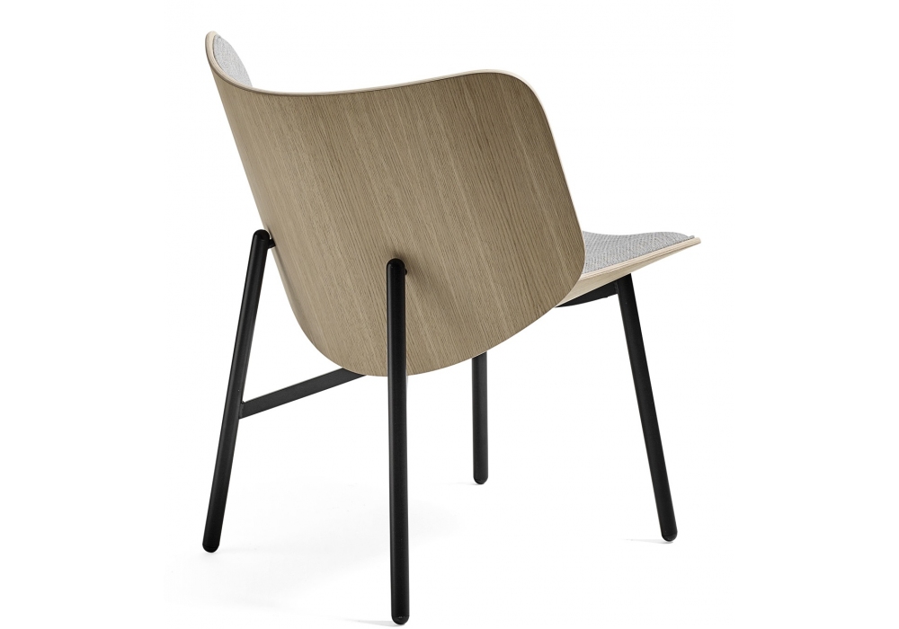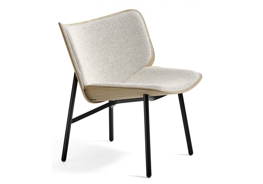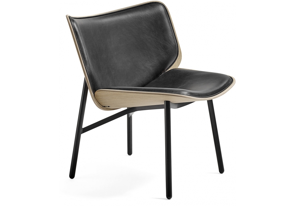 Dapper designed by Doshi Levien for Hay is an armchair formed by two shaped shells in oak veneered plywood, internal covering in leather or fabric and legs in black powder coated steel. Available in different upholstery.