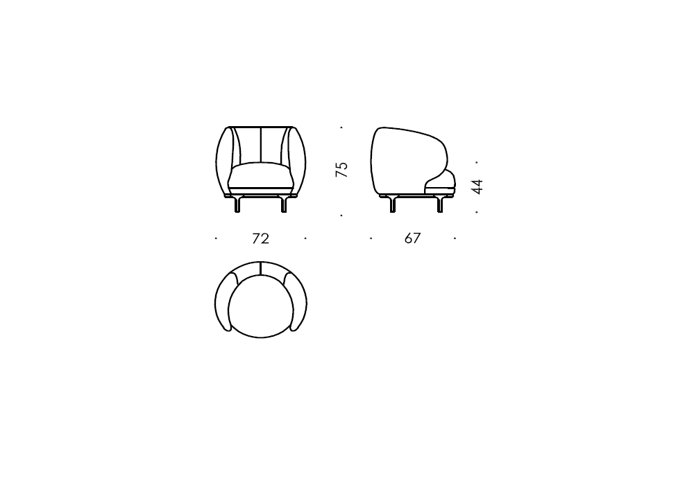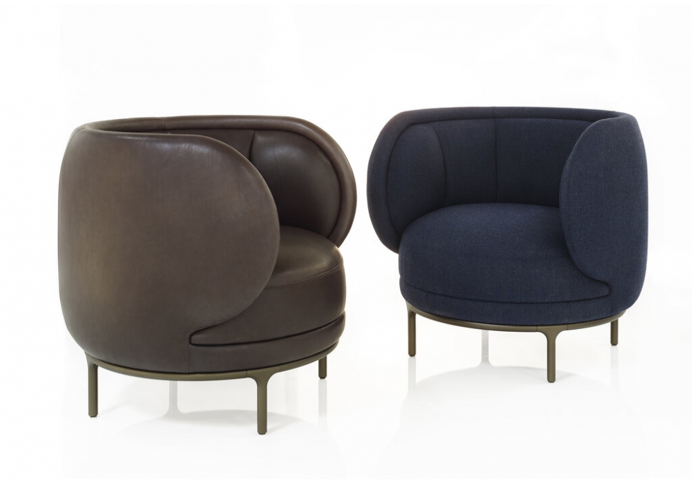 Vuelta designed by Jaime Hayon for Wittmann is an armchair with structure in wood and metal and upholstery in fabric, velvet or leather. Available in different finishes.