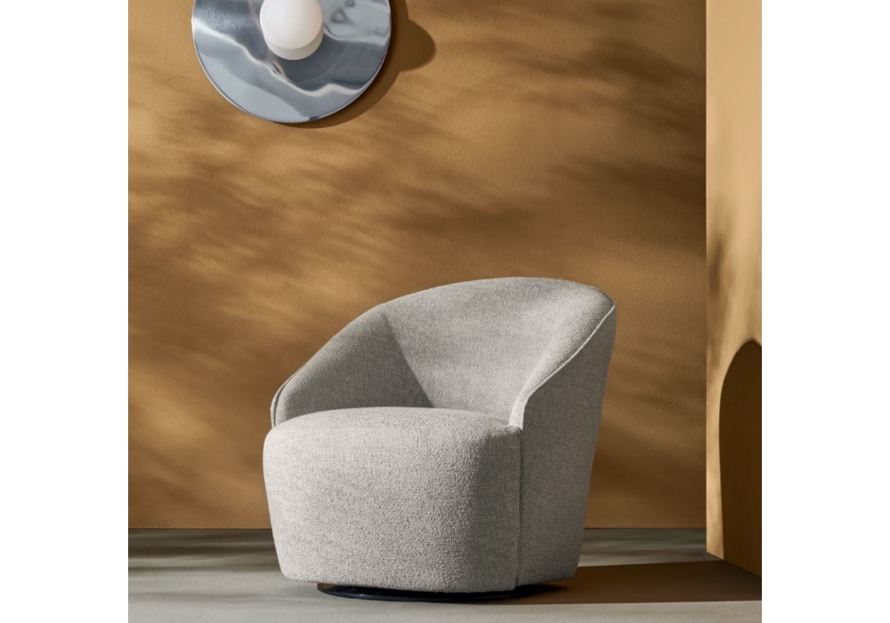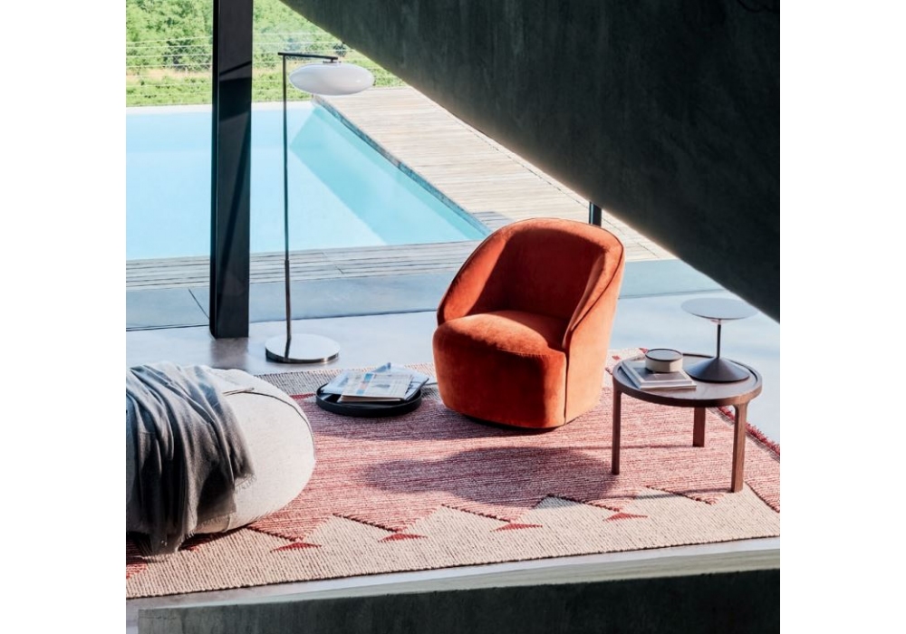 Jolie designed by Tiziano Carnieletto for Twils is an armchair with polyurethane foam padding, with internal structure in solid poplar and fir plywood. The completely removable cover is available in various fabrics and colours. Feet in black ABS or swivel base.