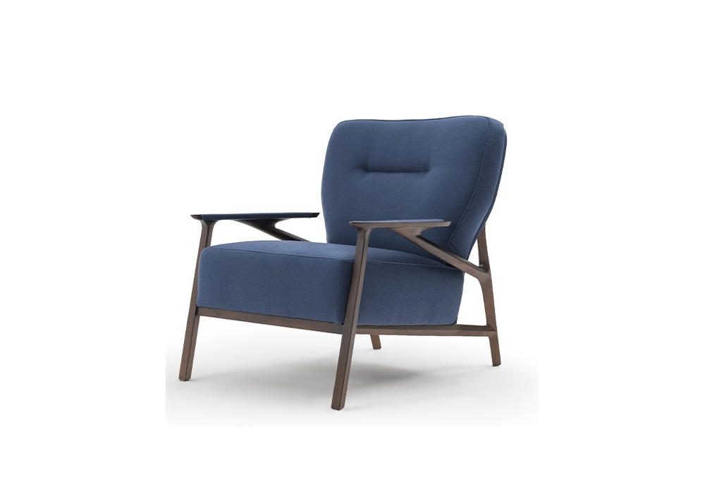 Vine designed by Frank Jiang for Turri is an armchair with plywood and solid wood structure padded with multi-density polyurethane foam and covering in different fabrics or leathers. Legs in solid walnut wood.
