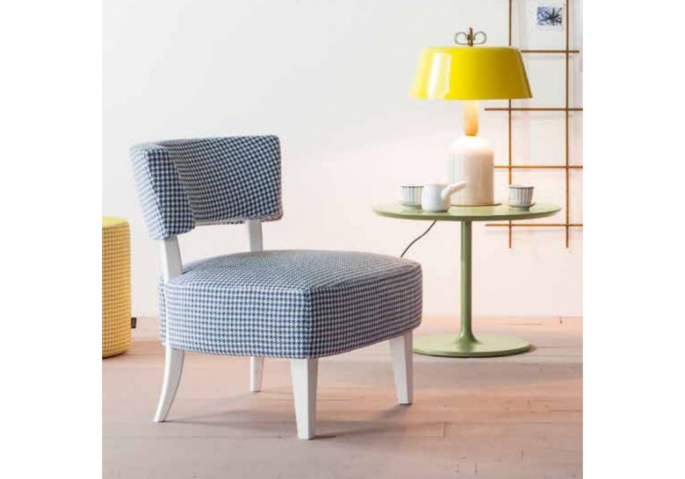 Kondi Mini designed and produced by Twils is an upholstered armchair. The completely removable cover is available in various fabrics and colours.