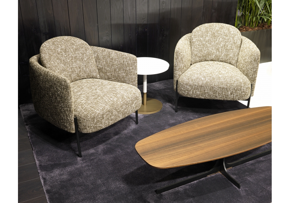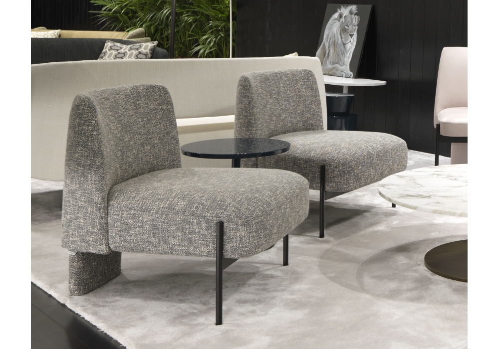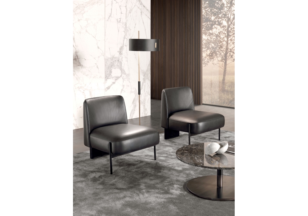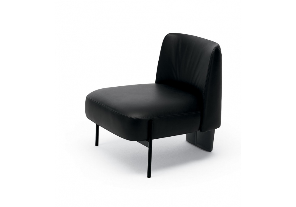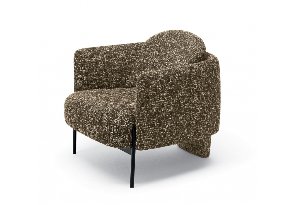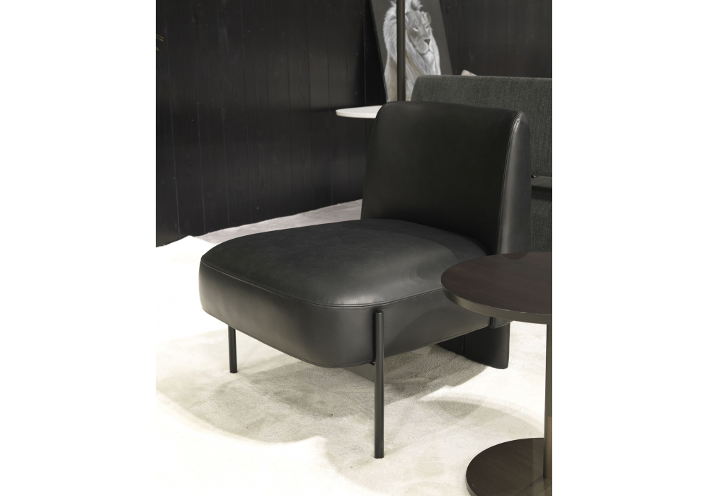 Virgin designed by Mauro Lipparini for MisuraEmme is an armchair made with a black painted metal base and cold-foamed polyurethane shell with fabric or leather upholstery. Available with or without armrests.