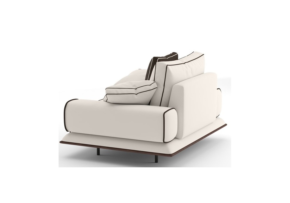 Blues designed by Giuseppe Viganò for Turri is an armchair with structure in solid wood and plywood padded with multi-density polyurethane foam and supporting structure in metal. Upholstery in different non-removable fabrics or leathers. The feet are made of metal in anthracite gray finish with feet in plastic material. Details in solid walnut with metal parts in different finishes.