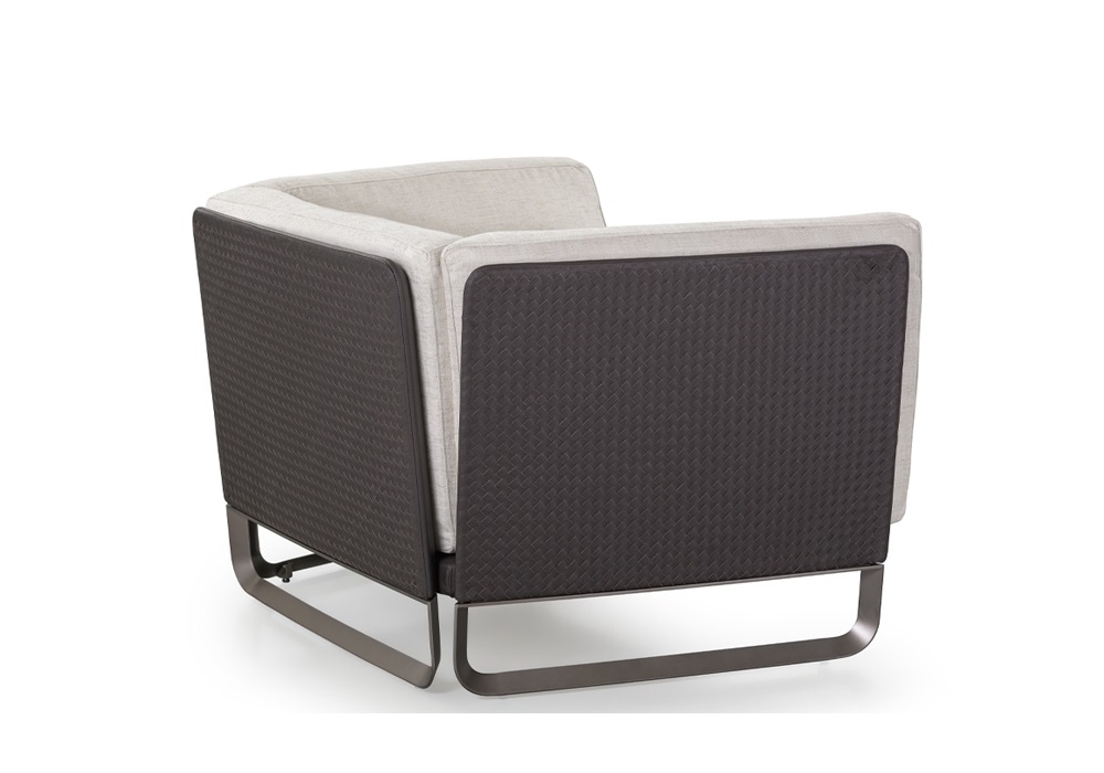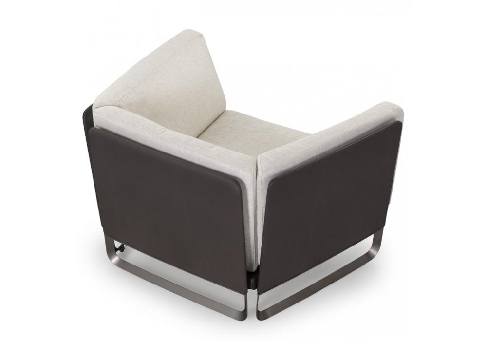 Milano designed by Blengini Ghirardelli for Turri is an armchair with structure in MDF, plywood and solid wood padded with polyurethane foam of different densities. Body and cushions upholstered in different leathers or fabrics. The feet are made of metal in a brushed nickel finish with feet in plastic material. Available in the version with smooth or woven shell.