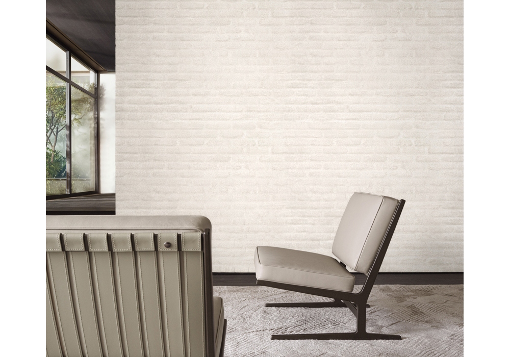 Paula designed by Vincent Van Duysen for Molteni&C is an armchair made with painted aluminum structure and regenerated leather straps. Seat and back cushions in high capacity polyurethane of different densities with infill in polyester fiber flake. Upholstery in fabric or leather.
