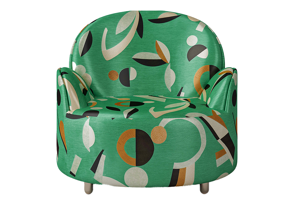 Strings designed by Nika Zupanc for Scarlet Splendor is an armchair with structure in foam and wood. Upholstery in different velvets.