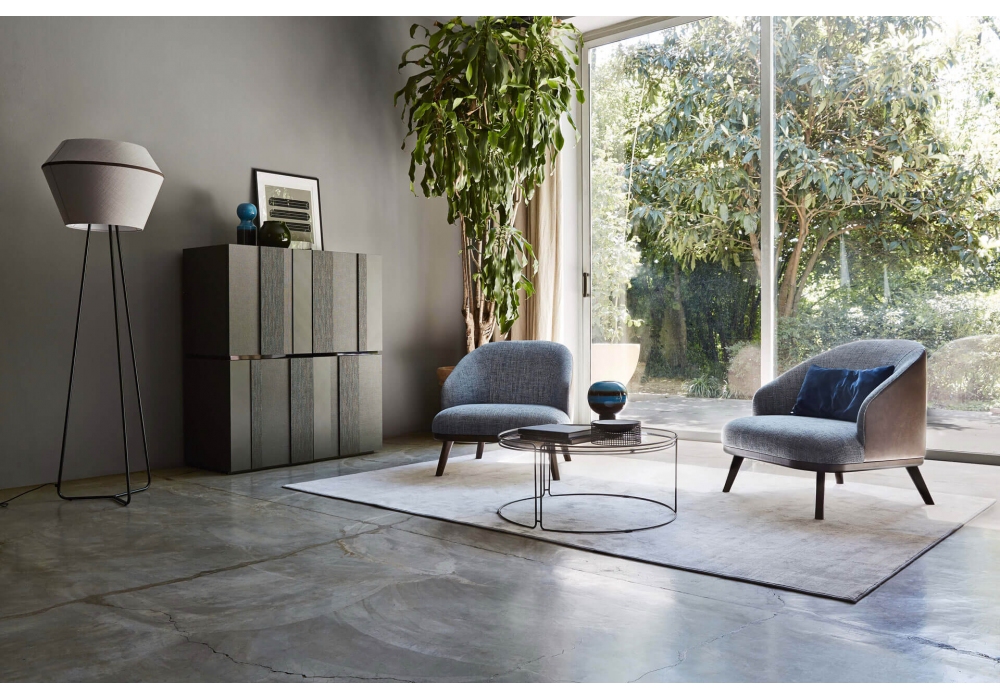 St. Tropez designed by Daniele Lo Scalzo Moscheri for Ditre Italia is an armchair characterized by a backrest in plywood panel, seat in crossed elastic ribbons of propylene fiber and latex. Upholstery in fabric or imitation leather, in different finishes. Also available in the two-tone version.