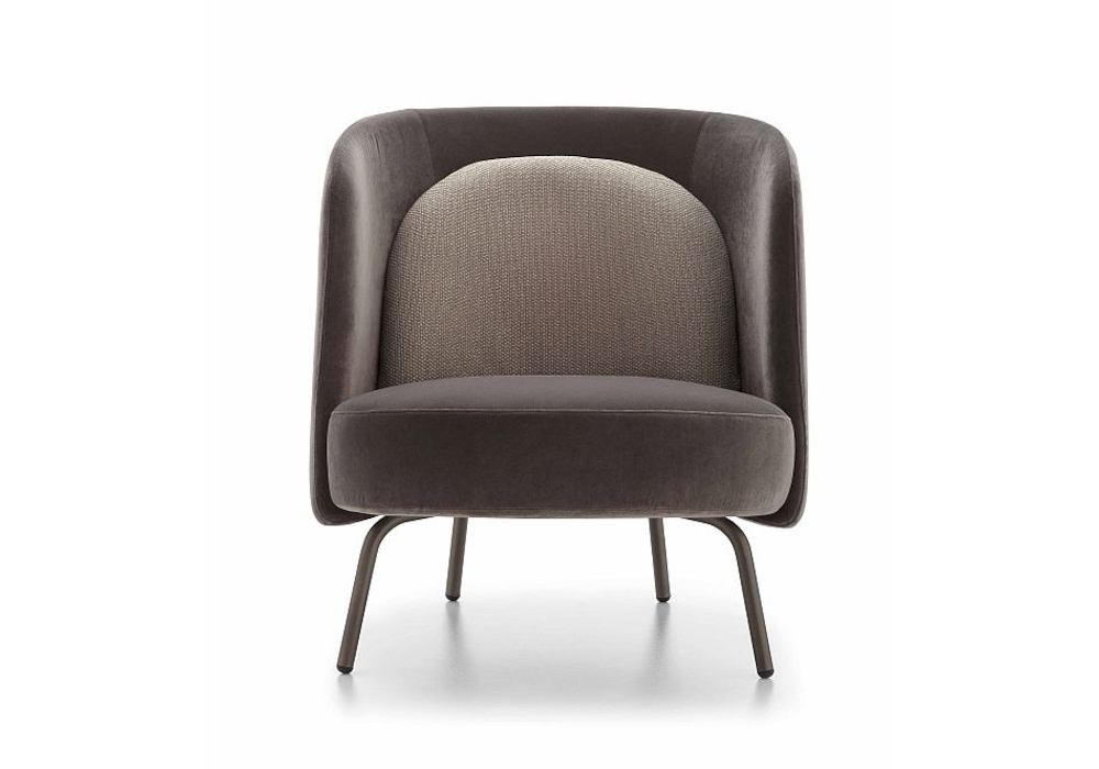 Lucia designed by Federica Biasi for Ditre Italia is an armchair with upholstered seat and back covered in fabric or leather, in different finishes. Also available in the two-tone version. Choice of high or low backrest cushion.