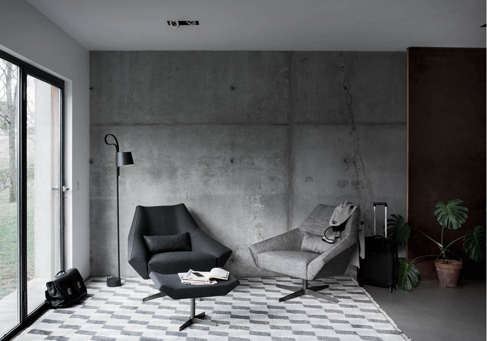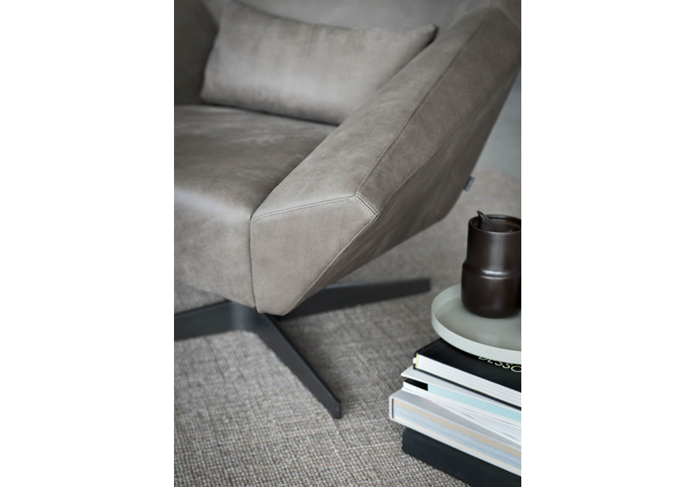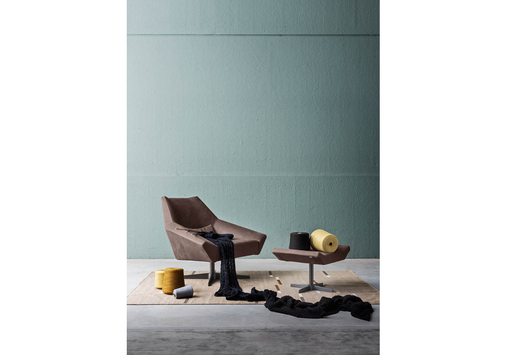 Olivia designed by Bruna Vaccher for Alf Dafrè is an armchair with swivel base in metal and structure covering in different leathers or fabrics.