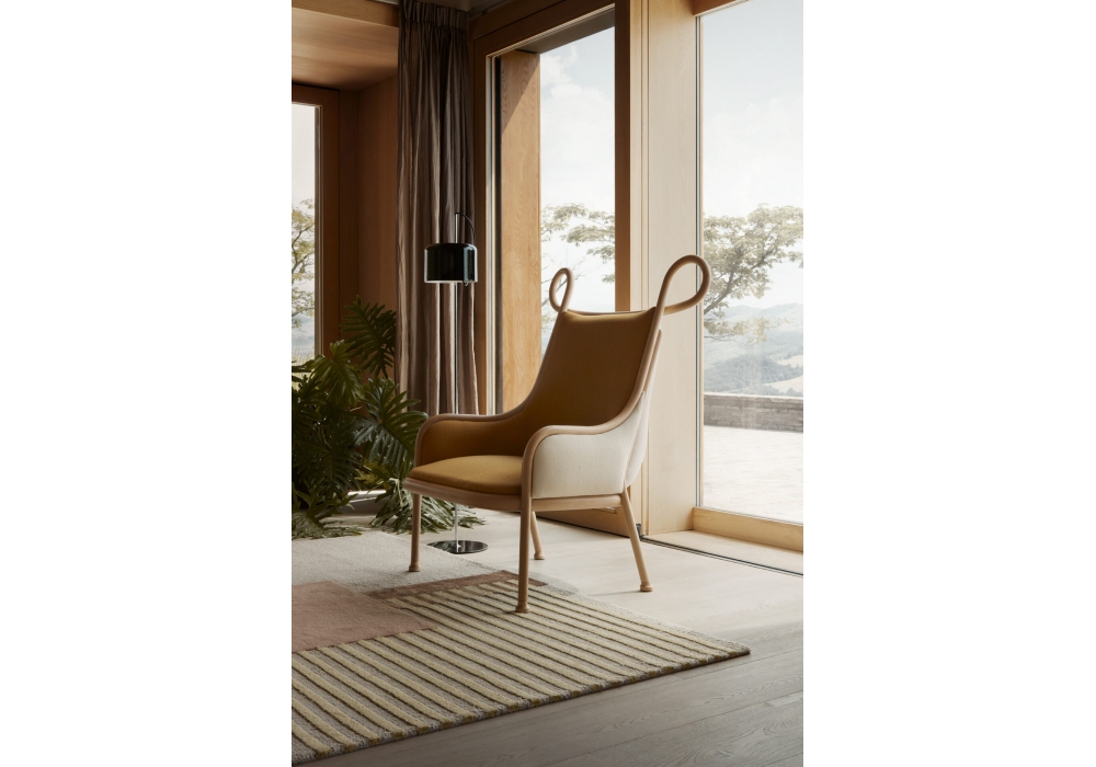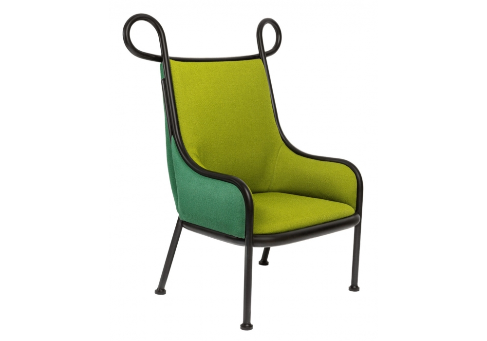 Mickey designed by India Mahdavi for Gebrüder Thonet Vienna is a lounge armchair with structure in bent beech. Upholstered seat and back with fabric or leather upholstery. Available in different finishes.