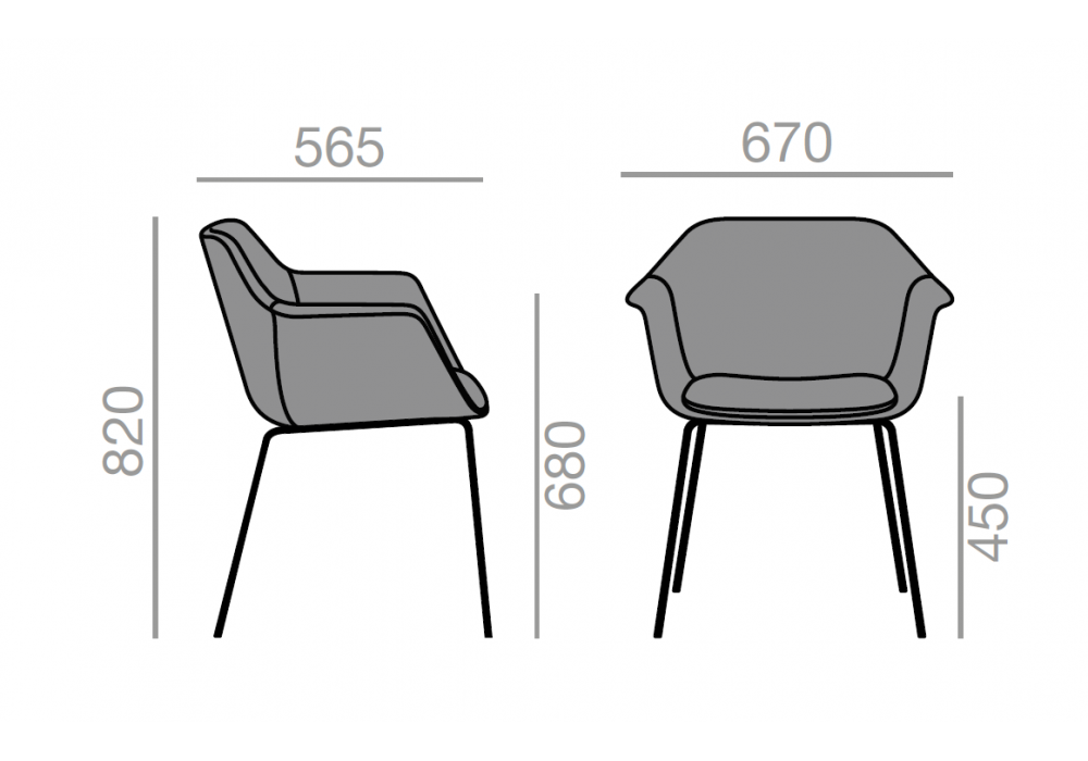 Gala designed by Piergiorgio Cazzaniga for Andreu World is an armchair with 4 steel legs in different finishes. Upholstery in fabric, leather or faux leather.