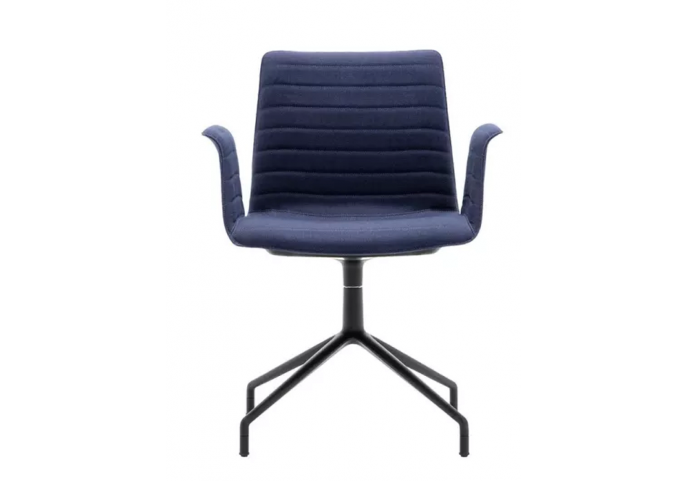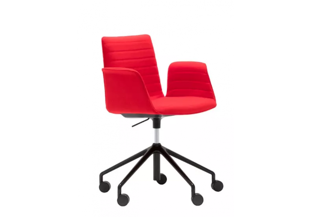 Flex Armchair designed by Piergiorgio Cazzaniga for Andreu World is an armchair with swivel aluminum base with 5 wheels or 4 spokes. Body covering in different fabrics, leather or faux leather.