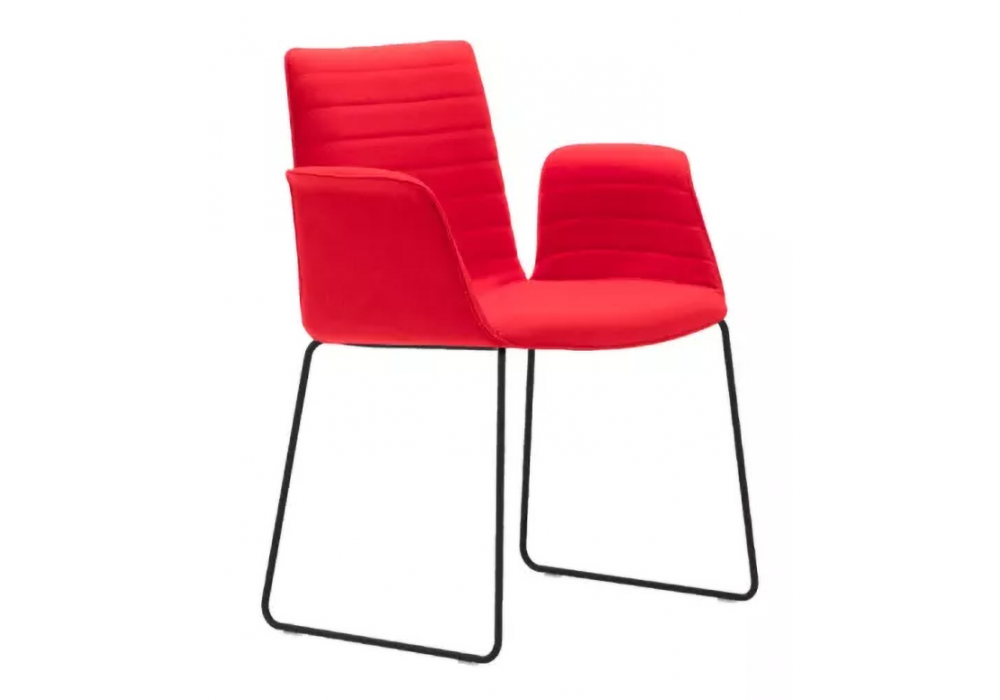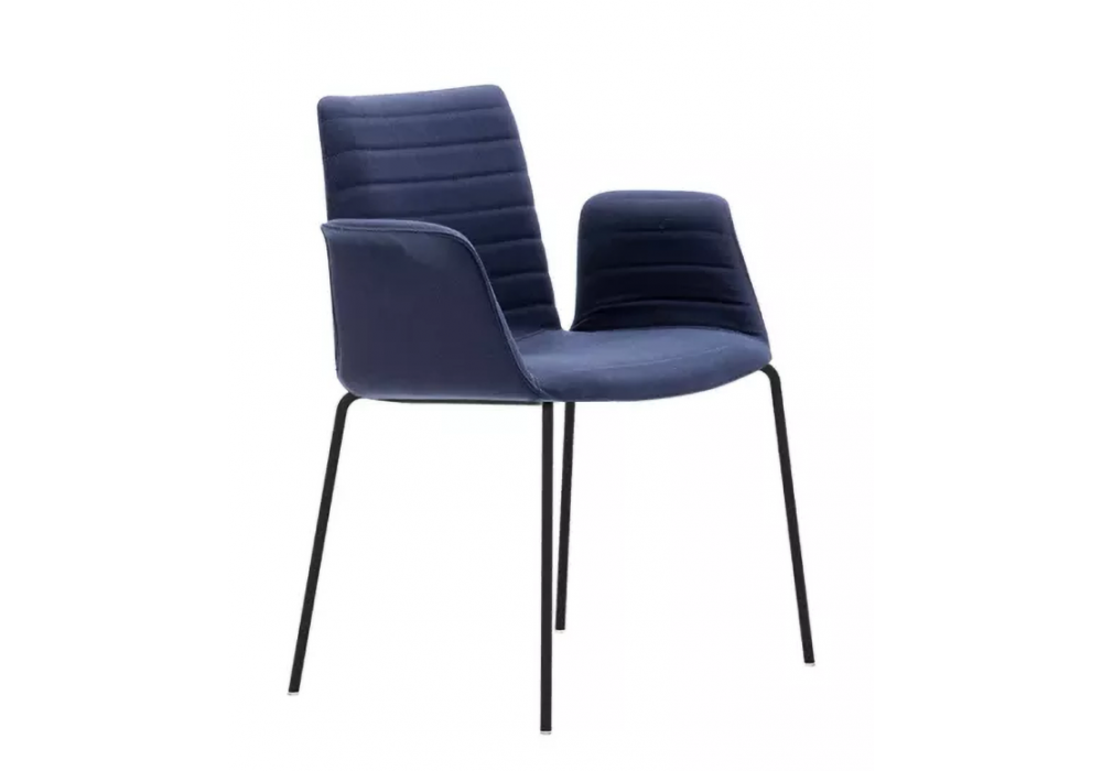 Flex Armchair designed by Piergiorgio Cazzaniga for Andreu World is an armchair with steel base made in different finishes. Body entirely covered in leather, imitation leather or fabric.