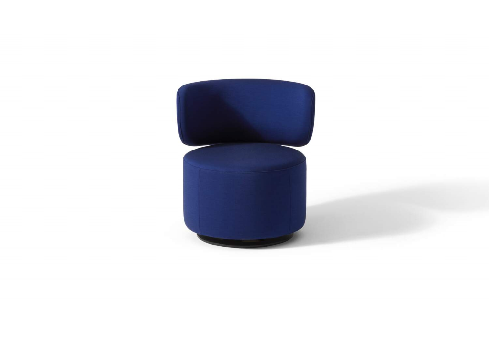 Tamburound designed by Barber Osgerby for Cassina is an armchair with aluminum bracket, swivel seat and backrest with independent movement and upholstery in fabric or leather. Also available with fabric-covered aluminum bracket.
