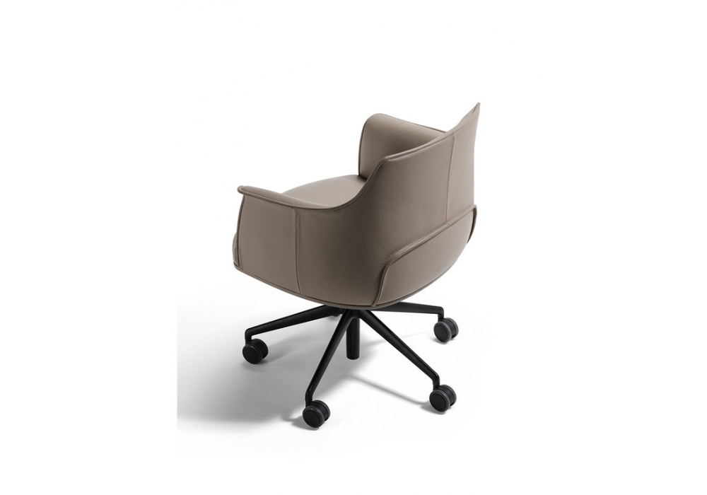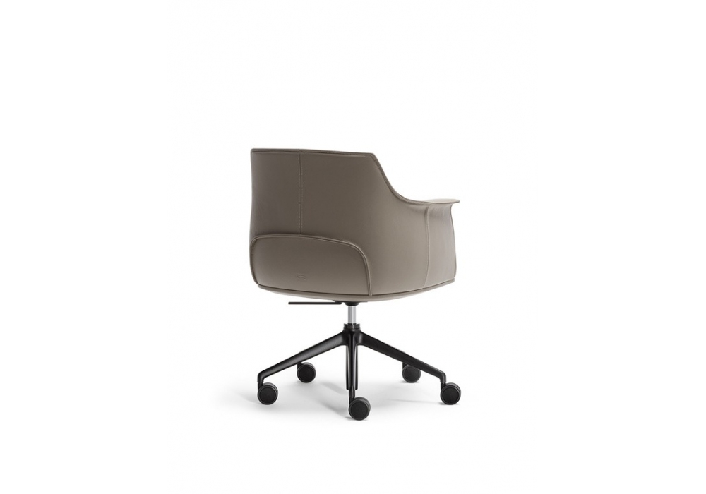Archibald Task designed by Jean-Marie Massaud for Poltrona Frau is an office armchair with rigid polyurethane structure and seat in birch plywood. The padding of the armrests and backrest is soft polyurethane and polyester wadding while the seat is made of expanded polyurethane and polyester wadding. The protective cover under the seat is made of embossed black ABS or covered in Pelle Frau® leather to match the body. The base is made of aluminum with a 360° rotation mechanism and height adjustment. The wheels can be chosen based on the type of floor where the armchair is installed. Archibald Task is available in different finishes and models.