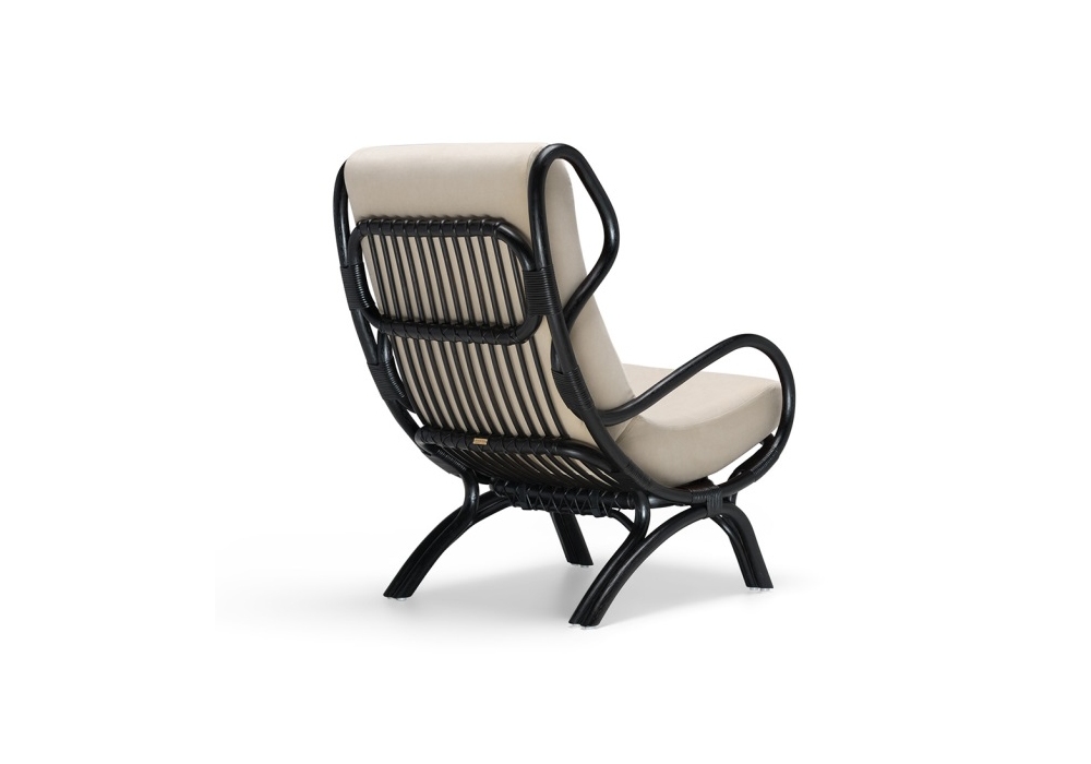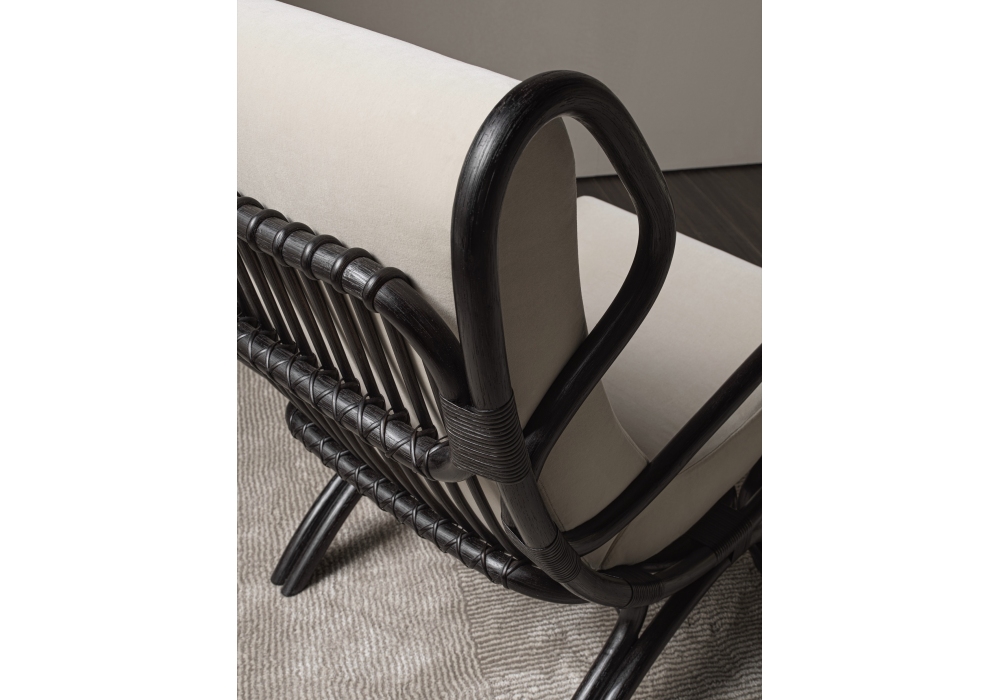 Continuum D.163.7 by Bonacina 1889 designed by Gio Ponti for Molteni&C is an armchair made with a dark brown aniline wicker structure, seat and backrest in high load-bearing polyurethane of different densities with infill in polyester fiber layer, all covered with coupled with cotton and polyester fibre. Upholstery in fabric or leather.