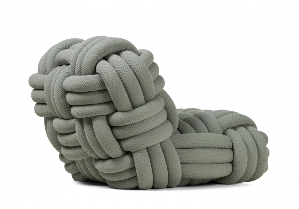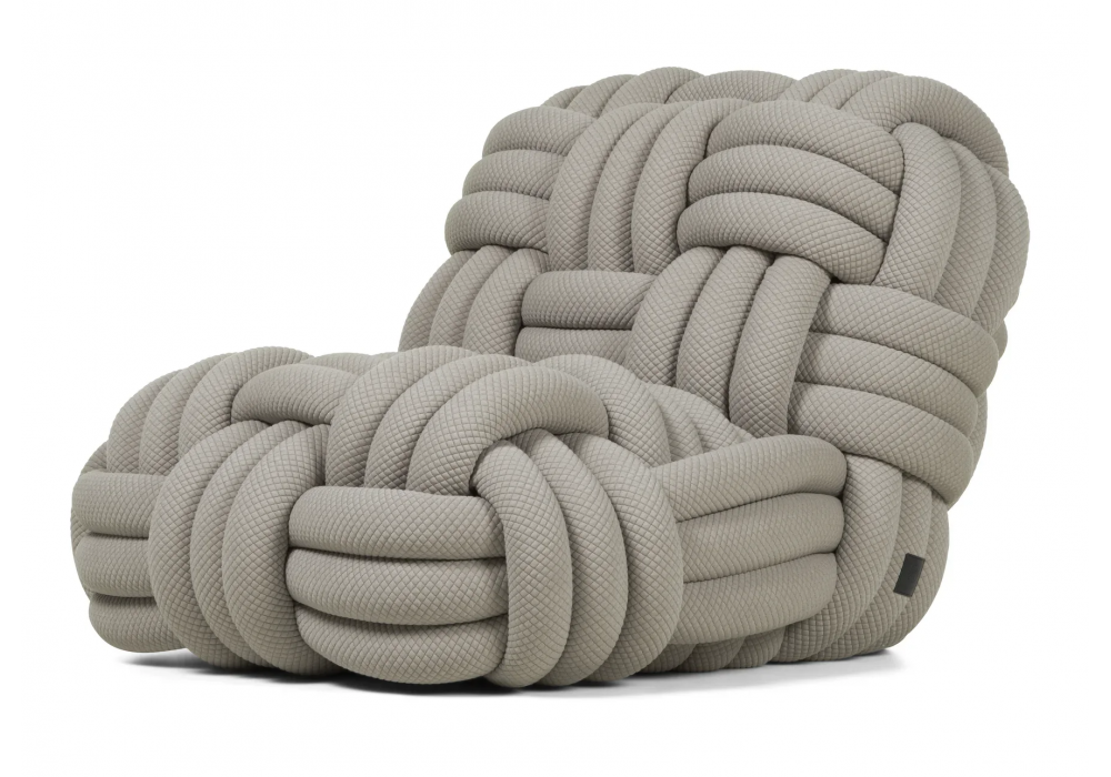 Knitty Lounge Chair designed by Nika Zupanc for Moooi is a lounge chair made with an extra-large "yarn" that recalls giant ship ropes. Wooden structure, steel springs, foam. Available in different finishes.