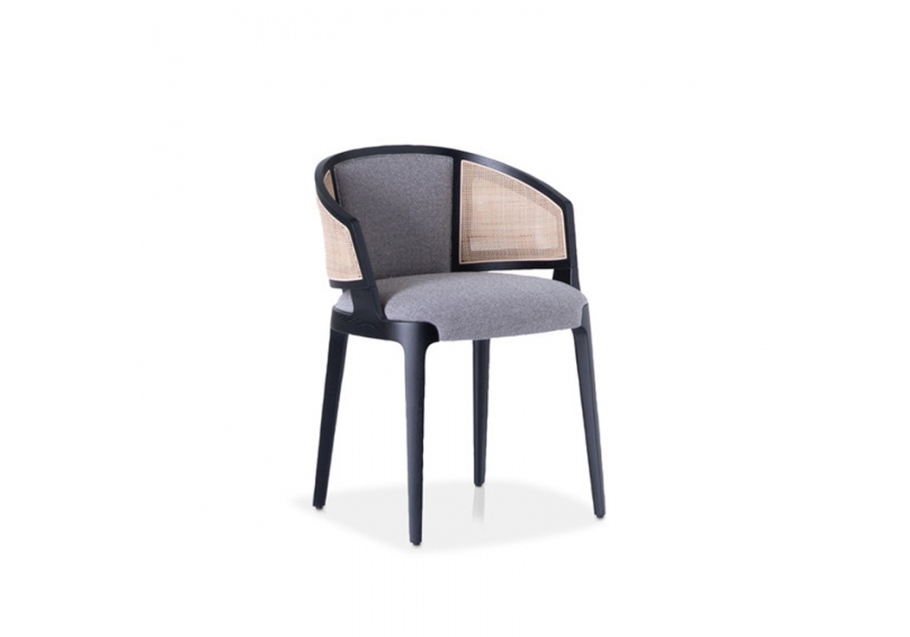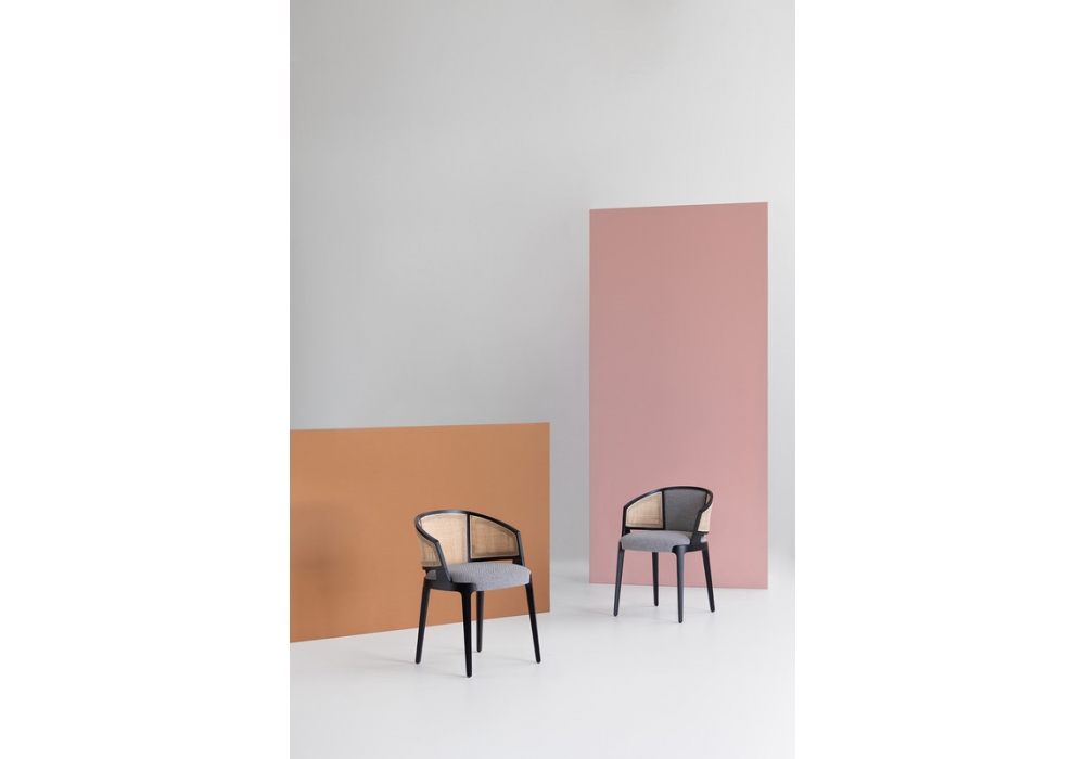 Velis Vienna designed by Mario Ferrarini for Potocco is an armchair with structure in ash or canaletto walnut in different finishes. Seat and backrest are padded with fireproof polyurethane foam or covered in Vienna straw and covered in various types of fabric, leather or eco-leather.