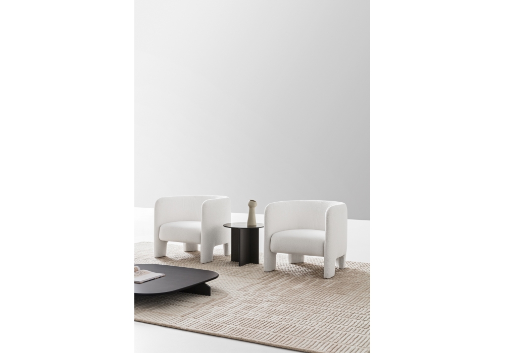 Cali designed by Dainelli Studio for Ditre Italia is an armchair characterized by load-bearing solid fir wood with metal reinforcement bar. Upholstery in fabric or leather.
