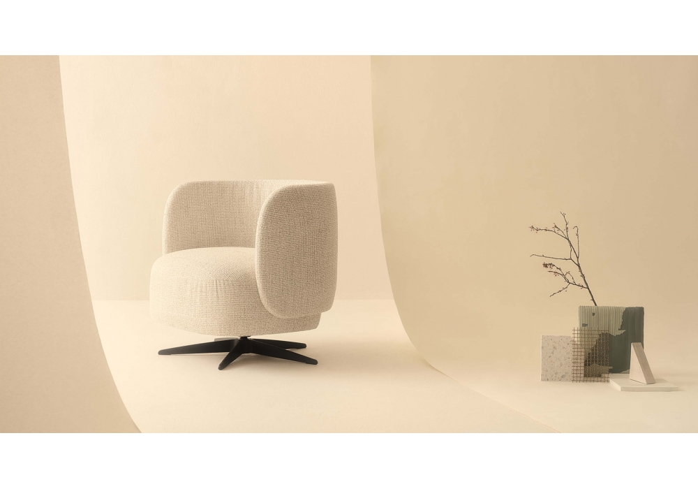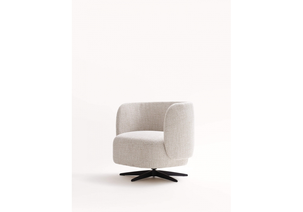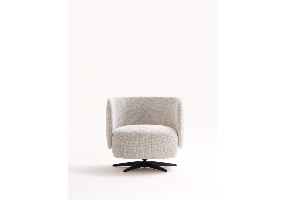 Miki designed by Pierattelli Architetture for Lema is an armchair with a load-bearing structure in solid wood and plywood with springing in elastic rubber straps. The seat padding is in polyurethane foam of different densities while the backrest is in cold-foamed polyurethane. The covering is in leather, synthetic leather or removable fabric. The base is swivel in black painted aluminium.