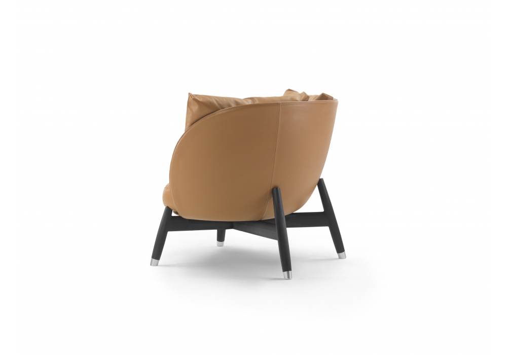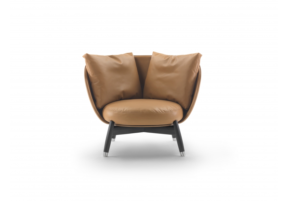 Eri designed by Fumie Shibata for Flexform is an armchair with base in various wooden finishes. The upholstery is available in various fabric or leather categories. Feet in different metal finishes. The Eri armchair shows a classic, elegant and enveloping design thanks to its highly refined backrest carefully designed for maximum relaxation. Made with particular attention to detail: the stitching is precise and discreet, the materials are of high quality and worked with great care.