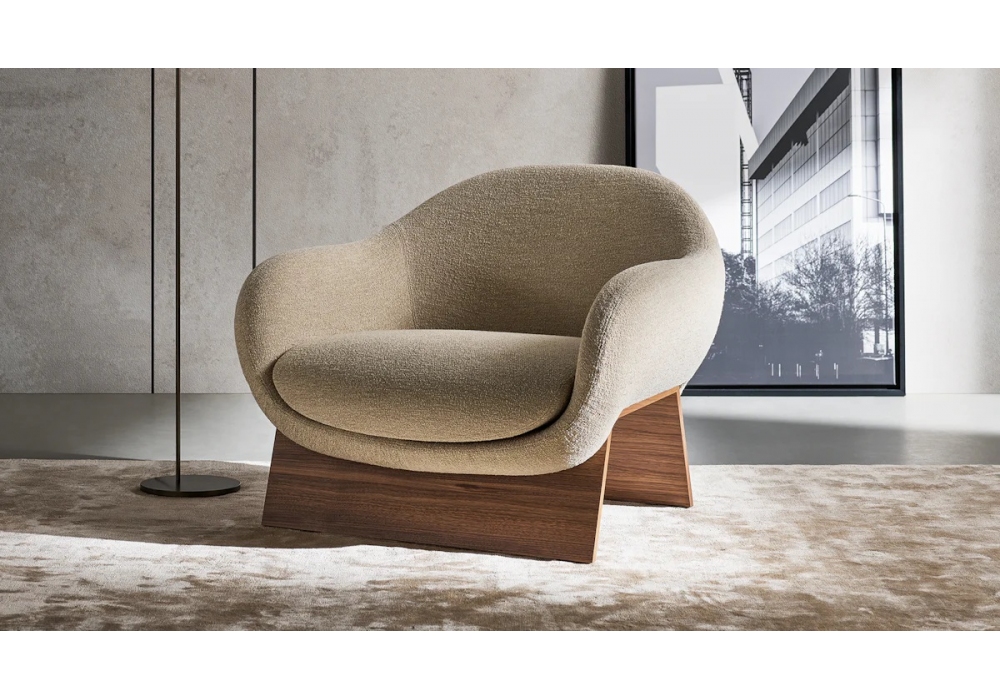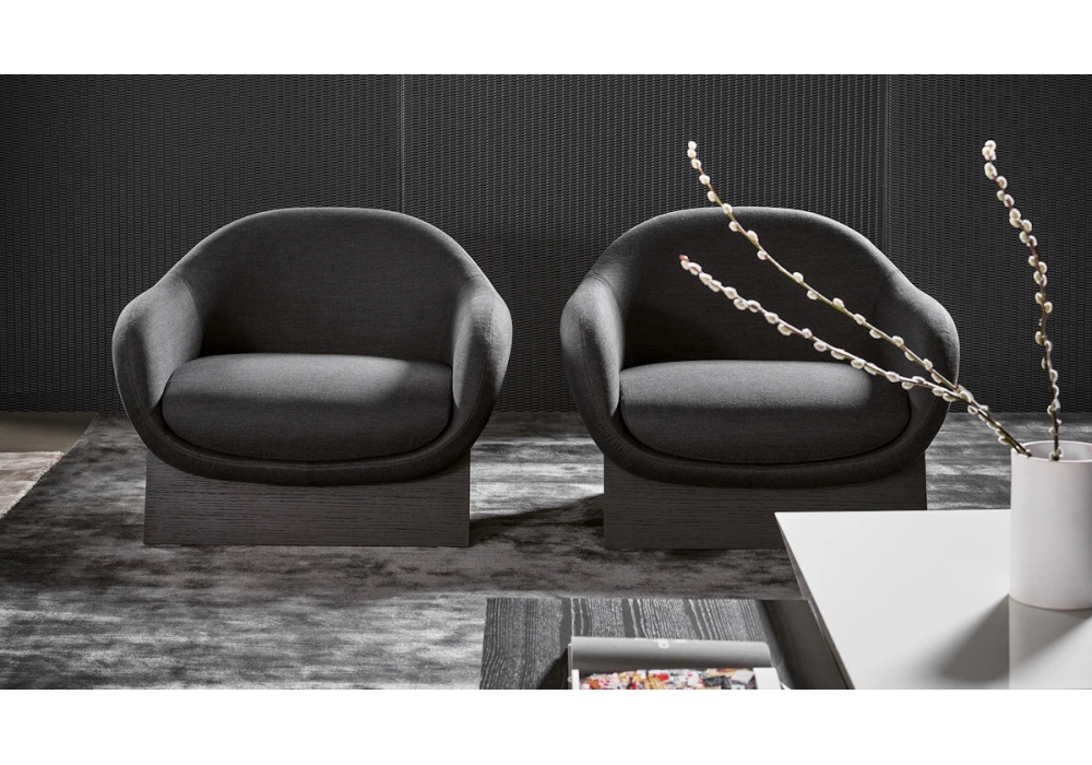 Boolean designed by Giuseppe Viganò for Bonaldo is an armchair with internal metal structure, base in veneered wood with metal reinforcement, padded seat and backrest covered in fabric or leather. Available in different finishes.