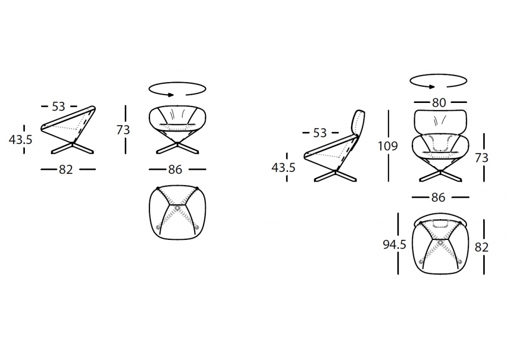 | Dimensions | ⢠86 x 82 x H 73 cm; ⢠86 x 82 x H 109 cm |