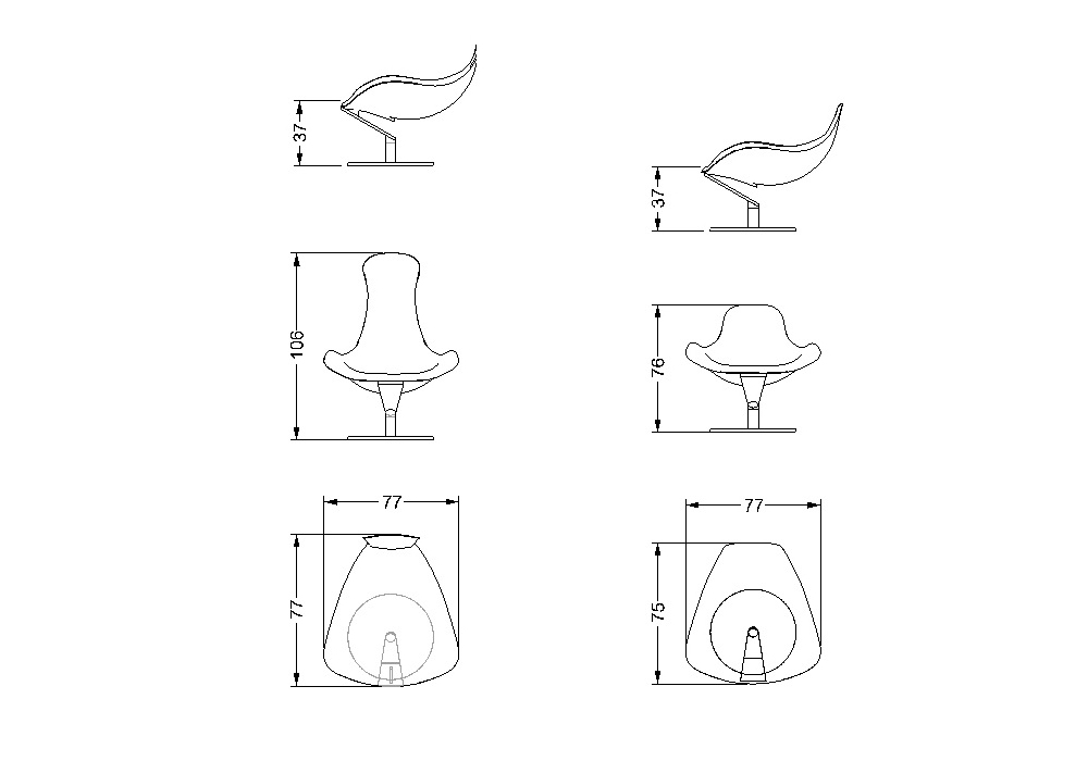 | Dimensions | High_ 77 x 77 x H 106 cm; Low_ 77 x 75 x H 76 cm. |