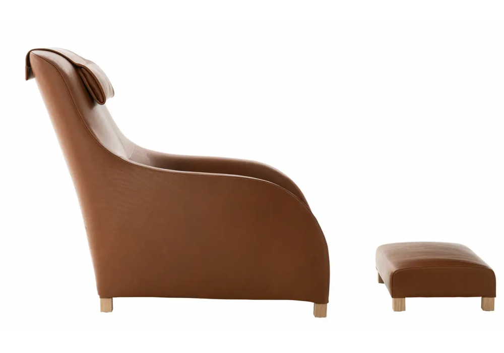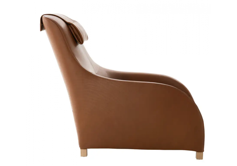 Kalos designed by Antonio Citterio for Maxalto is an armchair with oak feet and fabric or leather upholstery. Available with or without headrest.