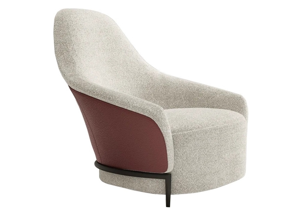 Saint-Guillaume, designed by Matteo Nunziati for Karl Lagerfeld Maison, is an armchair. The shell and front upholstery can be made in different fabrics. The lower frame is in wood, which can be ordered in the following finishes: american walnut matte, dark stained oak, grey stained oak matte, black coffee bamboo matte.