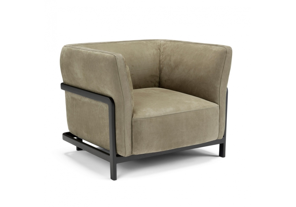 Dominick designed by Enrico Cesana for Conte Casa is an armchair made with a solid wood structure, polyurethane foam padding and fabric or leather upholstery.
