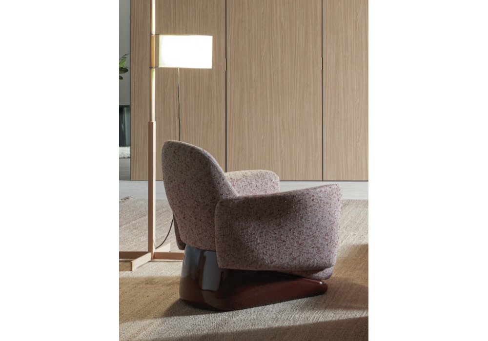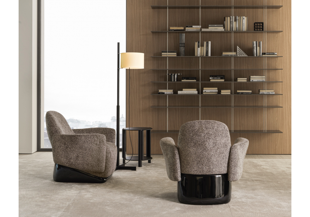 Eugène designed by Christophe Delcourt for Molteni&C is an armchair with glossy lacquered Polimex base and upholstery in fabric or leather. Eugène is characterized by its enveloping pro!ile and high backrest, designed to offer a welcoming seating experience.
