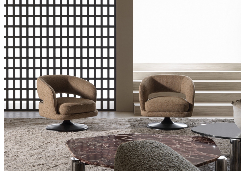 Linea designed by Vincent Van Duysen for Molteni&C is an armchair which embodies the refined aesthetic and distinctive taste of Italian savoir-faire, a guiding thread for Creative Director Vincent Van Duysen throughout the Molteni&C Collection. Swivel base with iconic trumpet shape and upholstery in fabric or leather.