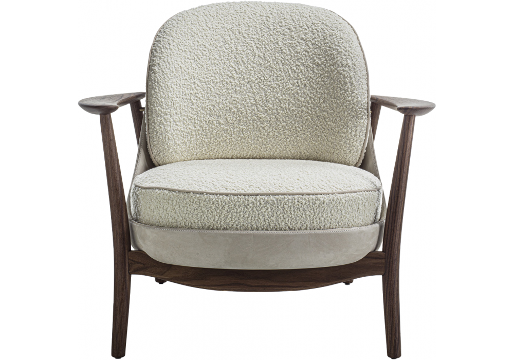 Ginkgo XL designed by Niccolò Devetag for Porada is an armchair with a solid canaletta walnut structure and a moulded rigid polyurethane shell covered in leather. Removable fabric or leather covers for the seat and back cushions. Piping available in tone-on-tone finishes for the external shell or in the available variants of the Zenith collection.