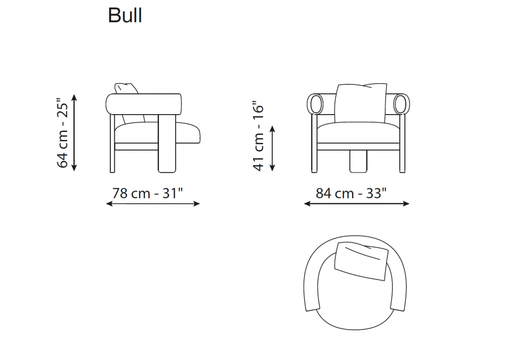 Bull designed by Gabriele & Oscar Buratti for Bonaldo is an armchair with upholstery in different non-removable fabrics or leathers. Structure in solid American walnut or Carbon oak.